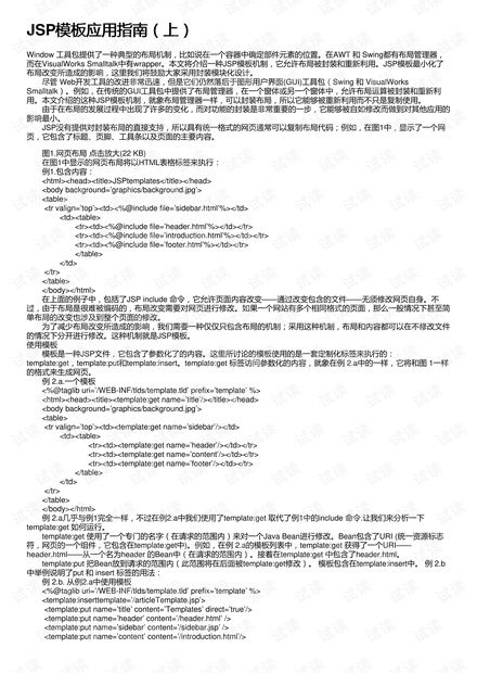 示例:<%-- 这是一个JSP注释 --%> 3. Java注释:在嵌入的Java代码段中使用,包括单行注释(//)和多行注释(//),这些注释只在Java代码段中有效,不会影响HTML或JSP标签。
