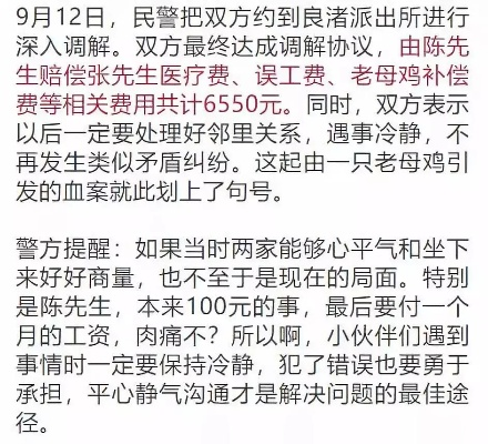 这起看似简单的撞鸡赔6000事件背后反映出的是责任与赔偿的问题,我们应该从事件中吸取教训,加强安全意识教育,倡导和谐共处的乡村文化,通过我们的共同努力,可以让乡村更加美好、安全,当面对类似情况时,我们应该冷静处理,通过合理沟通协商解决问题,共同维护乡村的和谐稳定,也提醒广大驾驶者在行驶过程中要时刻保持警惕,确保道路安全。